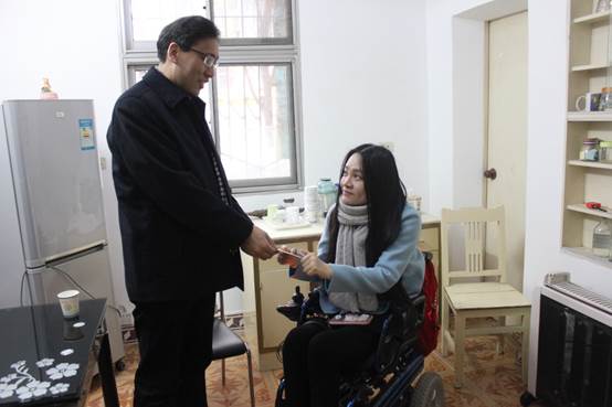 校党委书记江贤英为董明送上困难党员补助