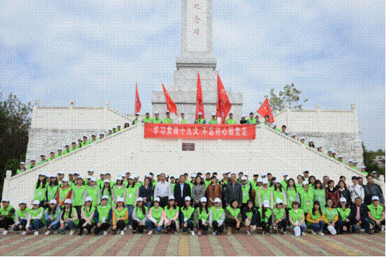 领导及师生在纪念碑前合影