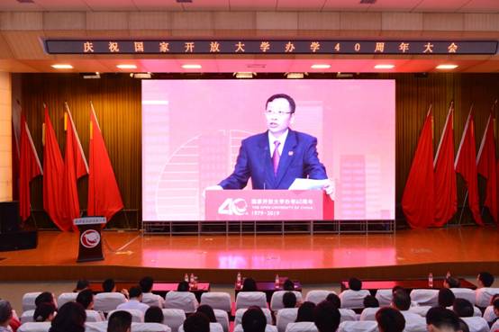 风雨兼程守初心,立德树人担使命。随着宣传片的播放,贺信的宣读,大会正式拉开帷幕。“我爱你中国,我爱你国开”,熟悉的旋律响起,五星红旗迎风飘扬,国开各分部共同庆祝国开40周年华诞的热闹画面一一呈现。回顾国家开放大学的创建历史和取得的巨大成就,畅谈国开未来,共商发展大计,推进现代科技与教育的深度融合,促进终身教育体系的建立。