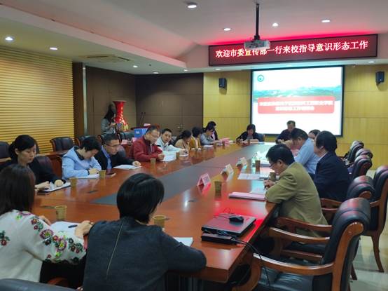 10月11日上午,市委宣传部会同市教育局来校调研意识形态和思政教育工作,市委宣传部副部长吴天勇带队。调研会在学术楼二楼会议室举行。校党委书记马蜂、党委副书记郭友鹏、副校长万国邦及相关部门负责人参加汇报。