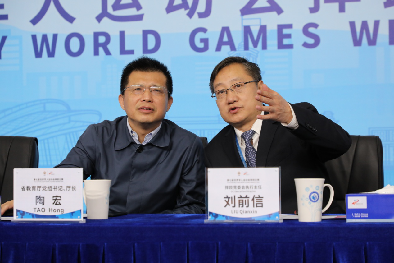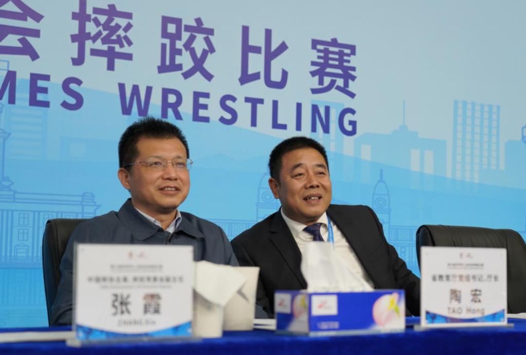 10月23日,湖北省教育厅厅长陶宏一行来到摔跤场馆,视察摔跤比赛现场。