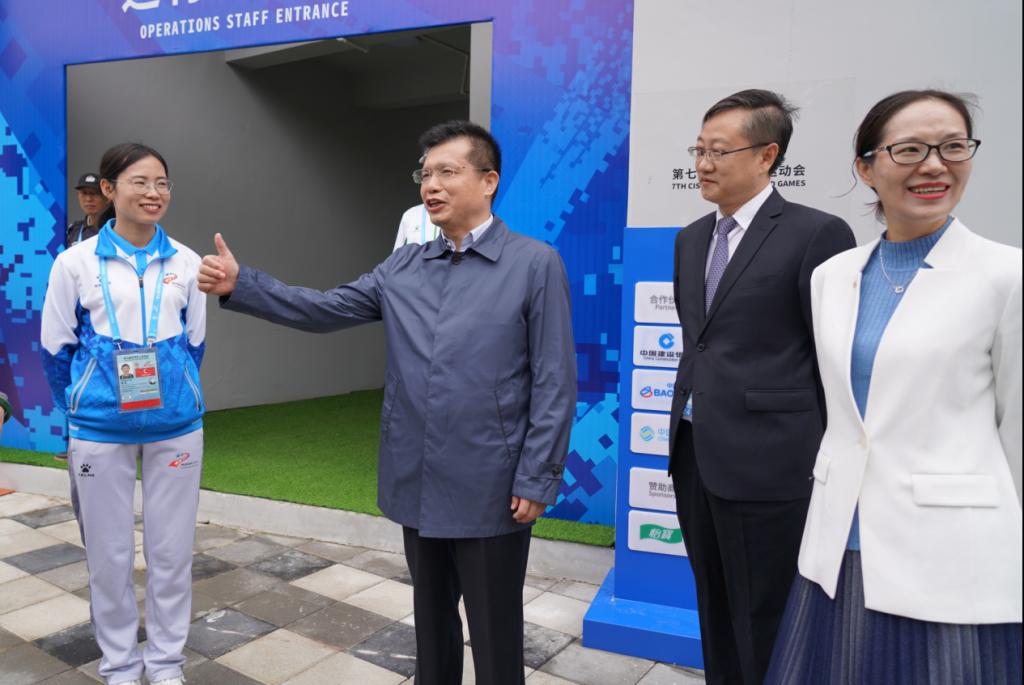 陶宏厅长又来到“志愿者之家”看望慰问辛勤工作的“小水杉”们。他看到志愿者们为赛事辛勤服务,在休息间隙不忘看书学习,不禁竖起大拇指为志愿者们点赞。