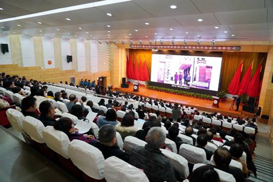 大会在嘹亮的国歌声中拉开帷幕。武汉市广播电视大学建校40周年宣传片《使命》用生动的事例、感人的画面,记录了40年来学校不断成长、砥砺前行的历史轨迹,展示了40年来取得的办学成绩,镌刻着几代电大人挥洒青春、自强不息的无私奉献。