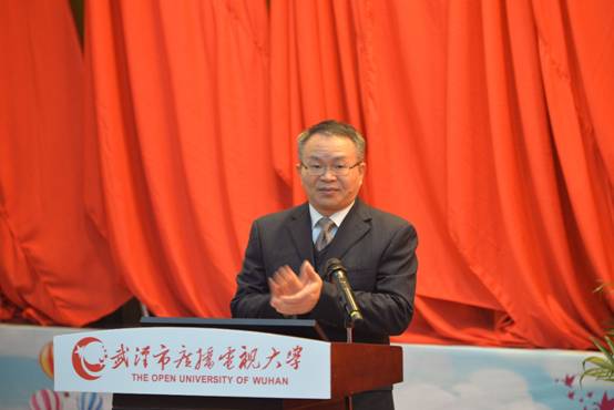 市人大常委会副主任胡树华同志讲话。他讲到,四十年来,武汉电大走过了艰苦奋斗、繁荣发展的光辉历程,为地方经济建设和社会发展输送了宝贵人才,在武汉市构建全民学习、终身学习的学习型武汉建设中起到举足轻重的作用。他强调,2020年,武汉市要率先实现教育现代化,率先形成学习型社会,如何擦亮武汉电大的牌子,实现武汉电大跨越式发展值得深入思考。他提出,一要坚持服务武汉经济社会发展的办学宗旨,二要加快建设中心城市特色鲜明的一流开放大学,三要营造全社会关心支持电大教育的良好环境,以习近平新时代中国特色社会主义思想和党的十九大精神为指引,求真务实,改革创新,努力使武汉电大教育事业再上新台阶,在“三化”大武汉和国家中心城市建设征程上,奋力谱写精彩的新篇章。