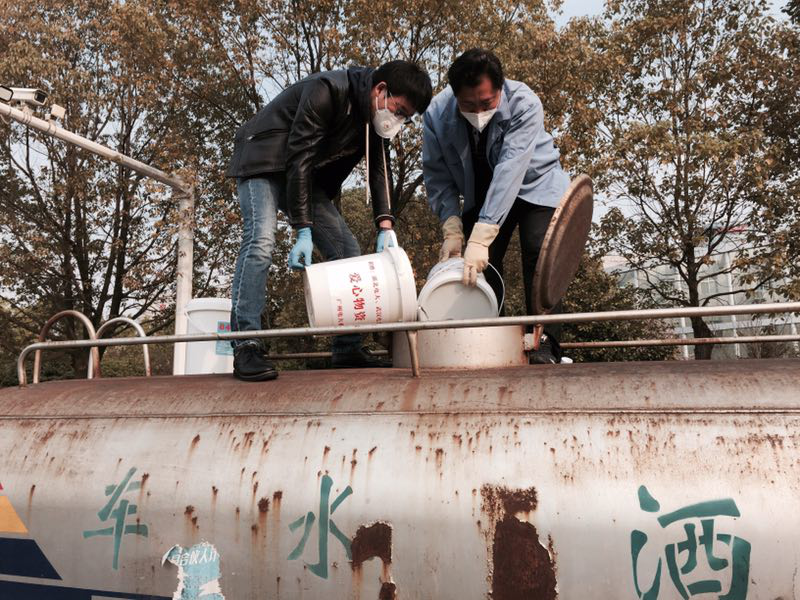 “2月初接到学校号召,我从老家开车返校,那个时候回武汉太难了,前前后后跑了四级单位办理证明才顺利回来。到校之后我发现原来跟我一样的还有我们吴院长。”涂小进老师笑着说道。同样从老家驱车返汉的环化学院副院长吴雨龙,从那天起便带着学院的涂小进老师和余磊老师一起,加入了防疫消杀组,全力做好各项防疫工作。