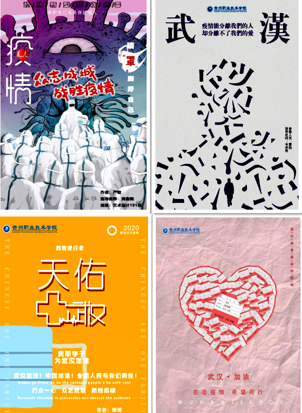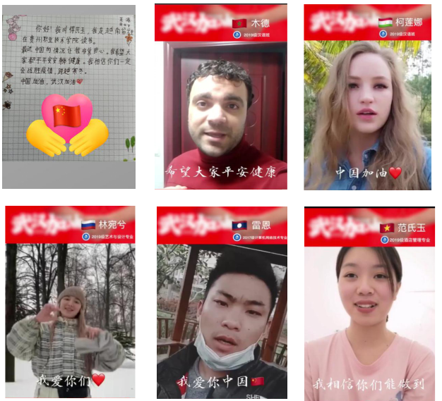 此外贵州电大的广大师生还通过书法、绘画、宣传海报、原创诗歌、声援视频等形式,为武汉电大(武软)加油;外籍教师、留学生纷纷从老挝、越南、柬埔寨、俄罗斯等国发来祝福视频,表达对学校和中国朋友的关心,表达他们对武汉电大(武软)的鼓励和支持。