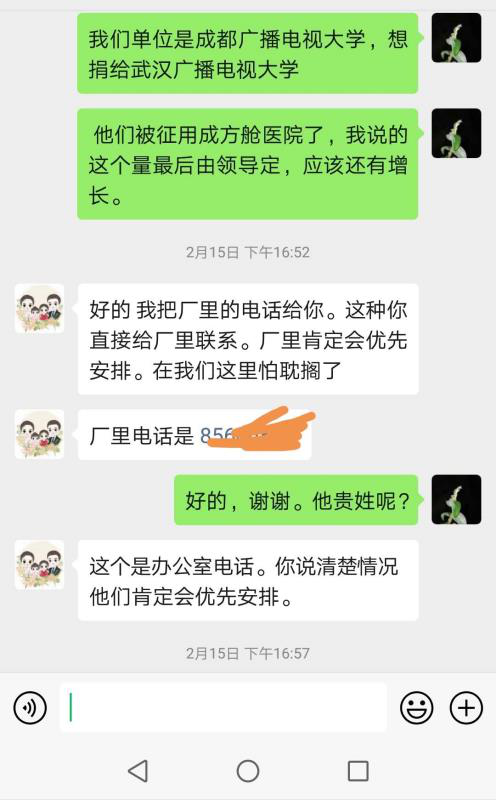 疫情就是命令,时间就是生命。西安电大第一时间组织召开党委会,详细研究捐赠工作;教职工也纷纷点赞 “武汉电大在这次疫情中展现出的家国情怀和社会担当,为电大人树立了榜样”。全校上下找渠道,陕西省内外多方联系协调,最终争取到20000只一次性使用医用丁腈检查手套。2月17日,这批手套抵达武汉。