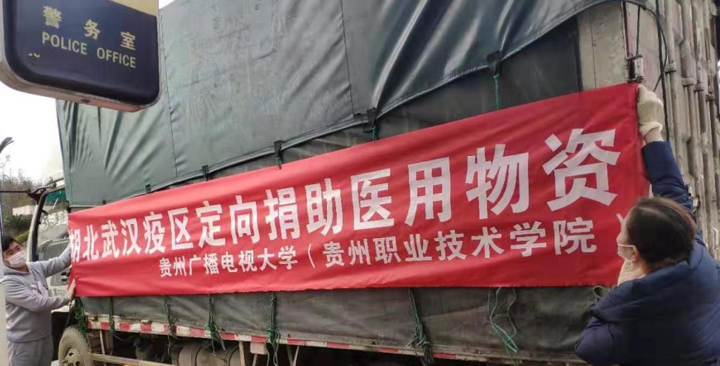 2月13日,贵州电大副校长龚辉亲自带领教职工将总重量将近5吨的100桶消毒液和800瓶酒精肩扛手提装车;次日即抵汉!而当时贵州电大自身的防疫物资已极度匮乏,但为了援助我校,他们毅然选择独自面对口罩不足100只,84消毒液只剩两桶,医用酒精基本没有的险境,将所有筹集到的物资一件不留,悉数捐赠!