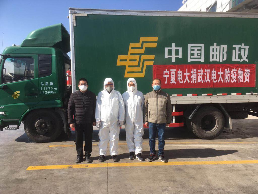 找不到更多的口罩,就捐其它能找到的!几经周折,宁夏电大筹措到了84消毒液200桶、手套10000只、医用口罩1000个。但是,如何将这些物资运到武汉是个难题,很多物流企业都不接单,最后只好求助宁夏邮政的领导。宁夏邮政得知后为电大一家人的深情所感动,当即拍板“免费运送”,而且还专门选派2名党员司机,抽血体检后执行本次运输任务,待完成任务返后再隔离观察14天,以确保万全。2月15日,物资装车启运,此时的武汉飘起鹅毛大雪。经办此事的宁夏电大教务处长陈冲说;“所幸是邮政专车,一路绿色通行。”次日,这批顶风踏雪疾行20多小时而来的物资终于顺利送到我校同志手中!