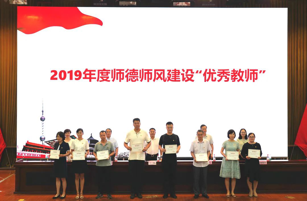 大会在庄严雄壮的国歌声中拉开帷幕。副校长杨京湘、孙美华分别宣读《关于公布2019年度师德师风建设“优秀教师”“优秀服务工作者”评选结果的通知》《关于表彰疫情防控、防汛救灾先进个人的决定》,校领导为受表彰个人颁奖。