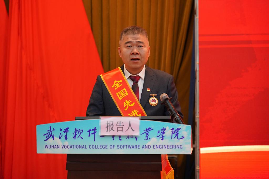 校长刘前信在会上作总结讲话。他代表学校向六位劳模代表致以衷心的感谢。他表示,听了六位全国劳动模范和先进工作者的事迹,备受鼓舞、催人奋进,他希望广大教职工立足岗位、勇于奋斗,向劳动模范和先进工作者学习,学习他们坚守初心、爱岗敬业,学习他们艰苦奋斗、勇于创新,学习他们甘于奉献、勇于担当,以他们为榜样,为学校高质量发展建功立业,为培养更多更好的技术技能人才贡献自己的力量。