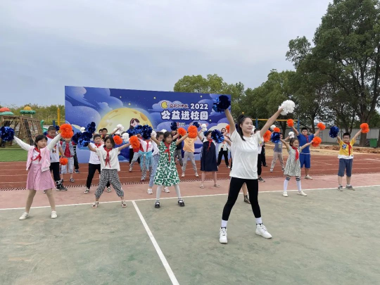 在户外美术课和科普公益课后,最燃情的时刻来了!在我校啦啦操教练团队金灵子、王熙、孙园三位教练的带领下,东方小学四年级的学生们开跳花球啦啦操。从活动筋骨到舒展腰肢,到最后跟着节奏摇摆身体,孩子们慢慢沉浸到运动带来的快感之中,整个操场也成了一片欢乐的海洋。其中,付芸菲、吴良淼两个小朋友的一招一式格外抢眼,被教练连连点赞:动作到位,笑容自信,跳得热情奔放又朝气蓬勃。