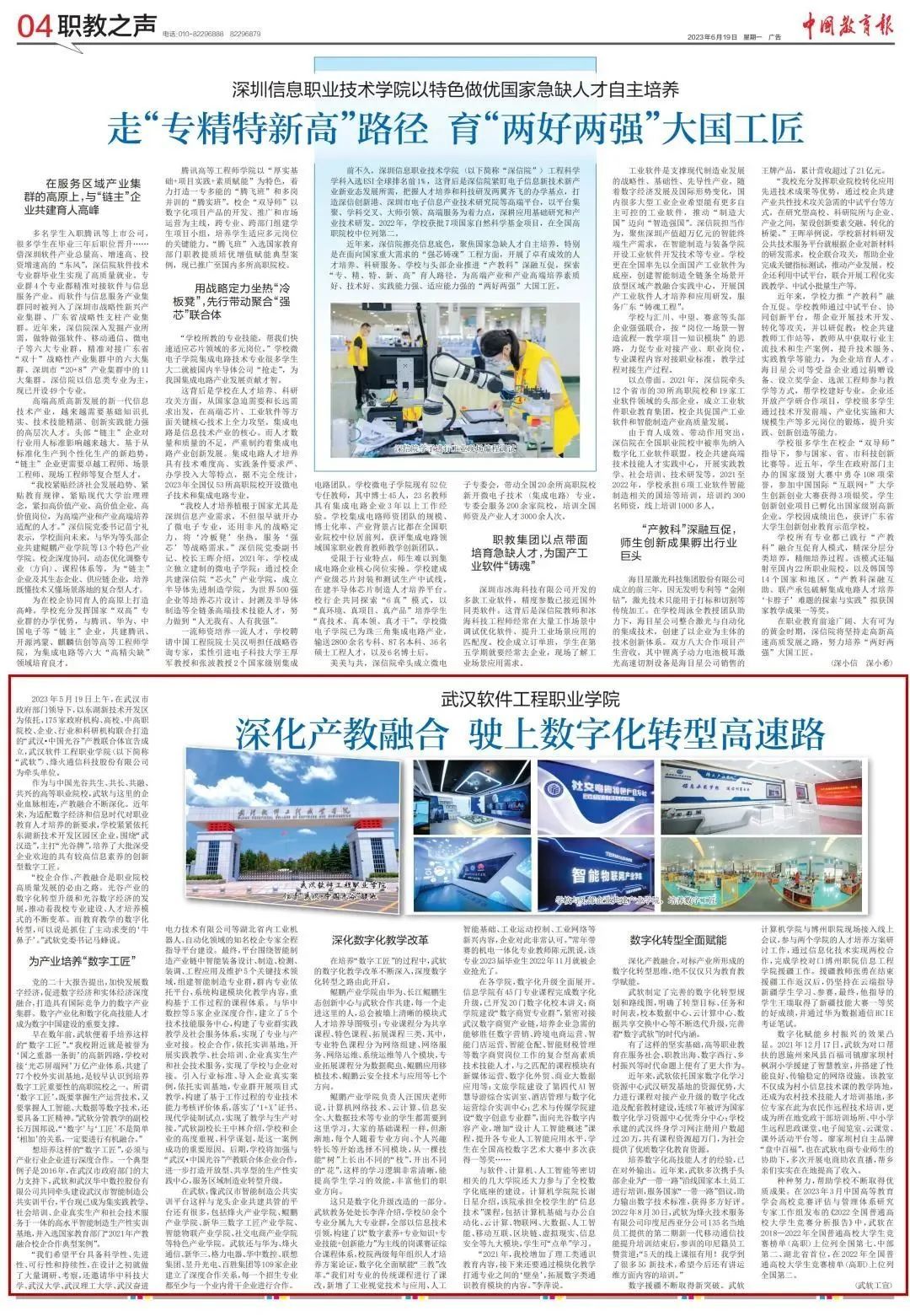 想培养这样的“数字工匠”,必须与产业行业企业进行深度合作。一个典型例子是2016年,在武汉市政府部门的大力支持下,武软和武汉华中数控股份有限公司共同牵头建设武汉市智能制造公共实训平台,平台现已成为集实践教学、社会培训、企业真实生产和社会技术服务于一体的高水平智能制造生产性实训基地,并入选国家教育部门“2021年产教融合校企合作典型案例”。