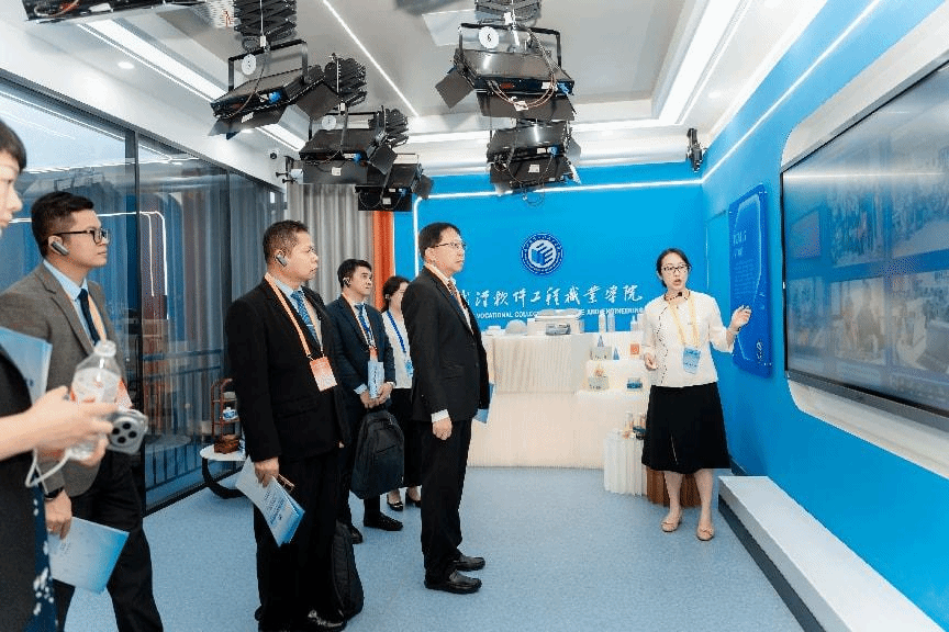 老挝教育体育部副部长金玛诺·蓬玛哈赛、柬埔寨劳动与职业培训部国务秘书谢顾所、印尼驻华大使馆教育参赞李健先生分别为大会致辞。他们回顾了与中国开展职业教育国际合作的成果,表达了对武汉软件工程职业学院在“教学场景智能化、产业需求数智化、培养模式全球化”方面取得成绩的赞赏,并对数智赋能职业教育国际合作以及促进本国职业教育发展提出了殷切希望。