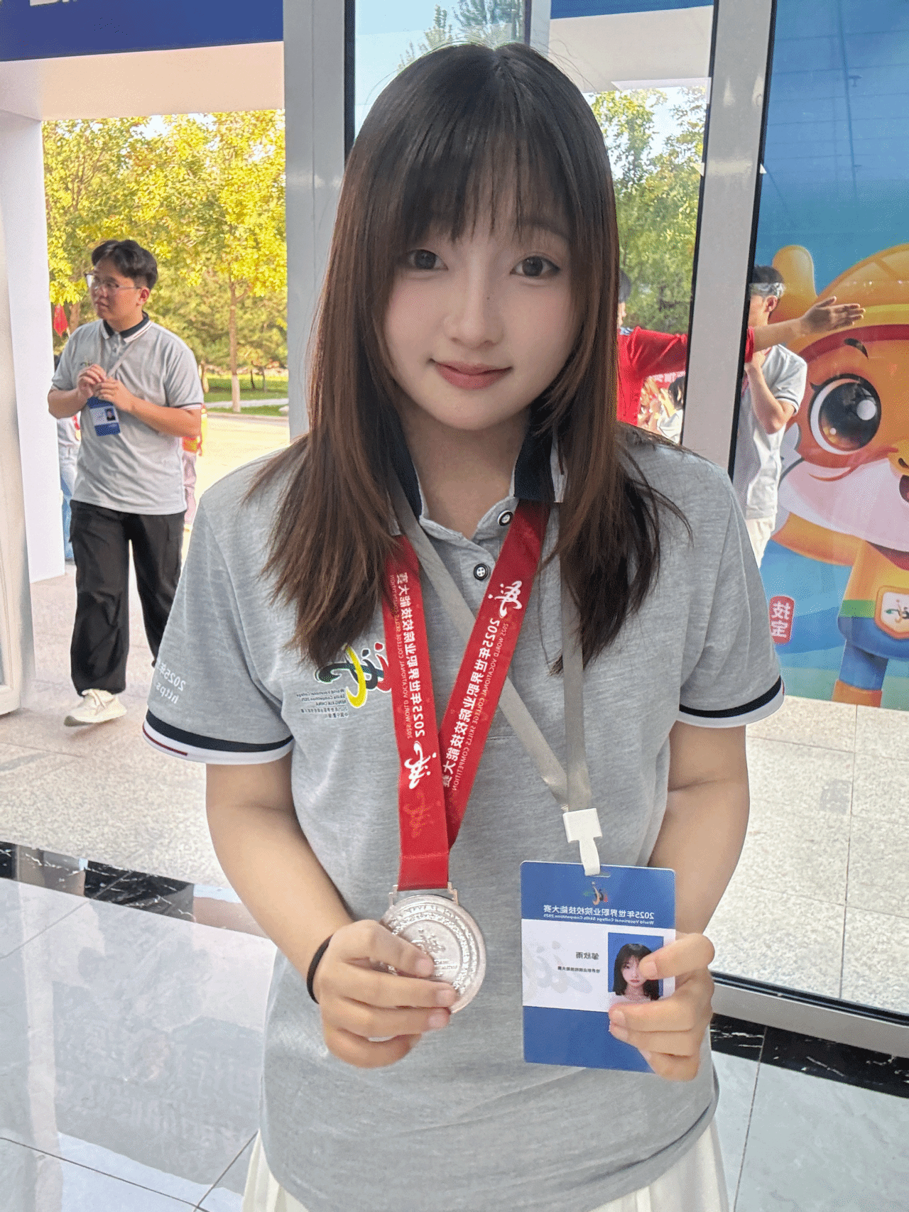备赛路上的那些瞬间:深夜工作室里共享的一杯热奶茶、攻克难点后击掌的欢呼,还有为调试代码流下的汗、为修改方案熬红的眼…… 每一次欢笑、每一滴汗水,都像细小的火种,慢慢攒成了推动她向前的燃料。而正是这份日复一日的积累与磨合,让她在国赛现场遭遇突发状况时,没有慌了手脚 —— 她深吸一口气,快速回忆起备赛时拆解问题的方法,很快找到破局思路。最终,她稳稳交出了最佳答卷,把那枚沉甸甸的国赛银奖,牢牢握在了手里。