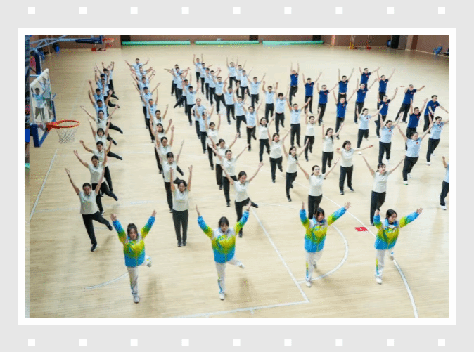 各分工会代表队,身着整齐统一的服装,迈着铿锵有力的步伐,展现出团结协作、积极向上的精神风貌。每一次伸展、每一次弯腰、每一次跳跃,都将广播操的力与美展现的淋漓尽致,仿佛如秋日麦浪在微风中浮动,既有集体的磅礴气势,又藏着个体的灵动美丽。老师们严谨的表现,展现出日常教学中的细致规范,也在跳跃与伸展间流淌着教育工作者昂扬向上的生命力。