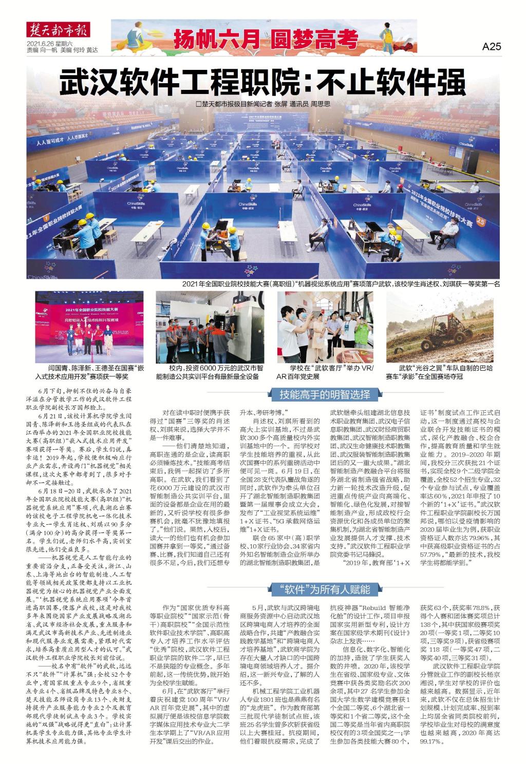 ——他们清楚地知道,高职连通的是企业,读高职必须锤炼技术。“技能高考结束后,我俩一起探访了多所高职。在武软,我们看到了花6000万元建设的武汉市智能制造公共实训平台,里面的设备都是企业在用的最新的,又听说学校有很多参赛机会,就毫不犹豫地填报了。”他们说。果然,入校后,读大一的他们也有机会参加国赛并拿到一等奖,“通过备赛、比赛,我们知道自己还有很多不足,今后,我们还想专升本、考研考博。”