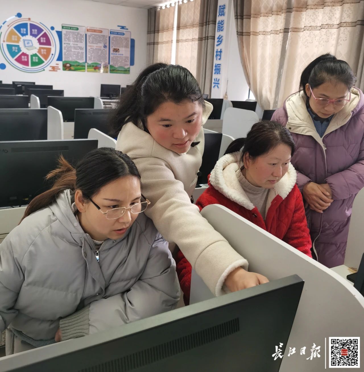 办公室里,28位女员工个个神情专注,用鼠标熟练地在电脑上操作。这个落户在老区乡镇的“前沿项目”——数据标注,给人工智能当“启蒙老师”。